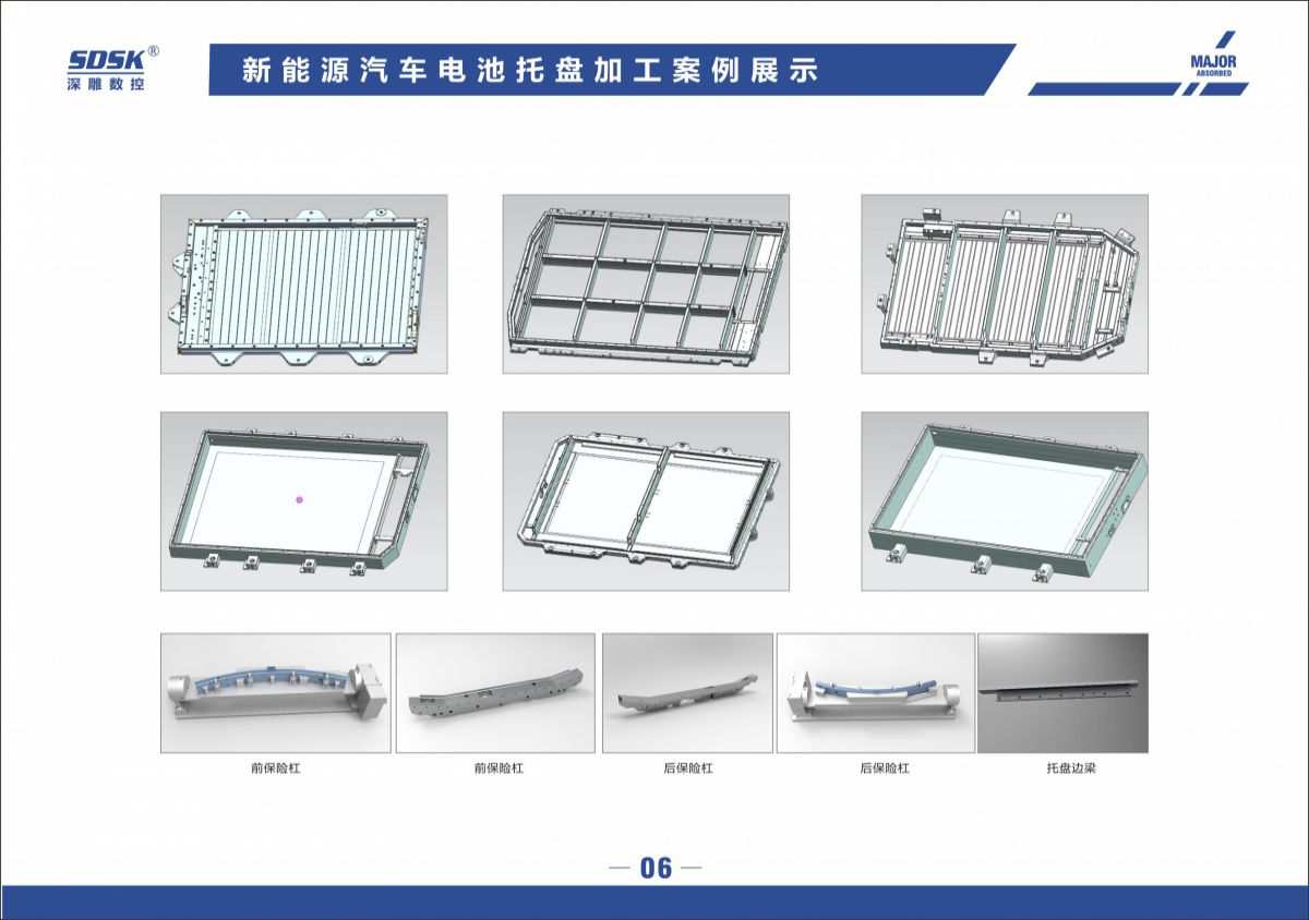 應(yīng)用加工領(lǐng)域:新能源電池托盤加工/航空航天細(xì)長零配件/機翼配件磁懸浮高鐵行李架/電池盒/鋁通風(fēng)裝置/燈源主體前燈鋁制品